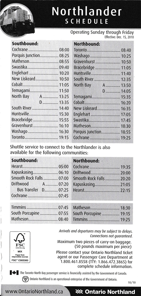 when I worked for ONR, then Director Passenger Rail Services, Gord Ryan and myself changed the Northlander schedule and introduced a campaign, “Travel by day each way”. The new schedule was well received as evidenced by increases in ridership. Furthermore, it allowed us to start developing a tourism strategy, “Ontario by Rail” with many tourism partners on board (no pun intended). Discussions with Via and others were also ongoing where their service could be used to help put butts in seats, for a northern Ontario experience. The current ONR plans are very much like the failed Northlander of yesterday. Will history repeat itself? Time will tell.