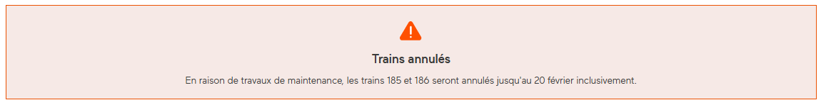«Bonjour, nous vous contactons en lien avec votre réservation à bord du train 186. Le train 186, qui devait voyager entre White River et Sudbury le [date], est annulé sans transport alternatif en raison de problèmes mécaniques. […] Veuillez nous excuser de tout inconvénient que cela puisse causer. Nous vous remercions de votre compréhension.» — Avis aux voyageurs pour les trajets du 18 avril et 28 décembre 2025